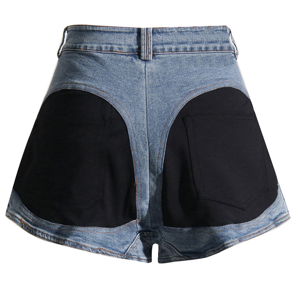 Designed to fit loosely around the hips. these designer shorts are an abbreviated version of the trendy spliced denim that we're seeing on all of the celebs. Made from rigid cotton. our Luxe's denim shorts come in a faded medium blue wash that channels the nostalgic laidback mode as you put it on. Featuring the classic five pockets. belt loops. and a button-zip fly to the front. the wide-leg silhouette is designed in a bias cut to create the most comforting fit and it turns to an even unexpected cool spliced design with the dark-wash denim to accentuate fuller butts. Pair these denim shorts with a basic tank top and trainers for a summer-ready get-up.