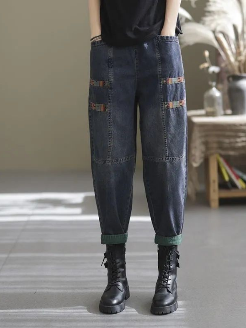 This loose patch harem pants are made from denim and feature a blue color. The waist is loose. so you can adjust it to fit your body perfectly. The pants have a length of 86cm / 33.8inch. which means they will be perfect for wearing with heels or sneakers. They are also available in S / M / L sizes. so you can choose the one that fits best!