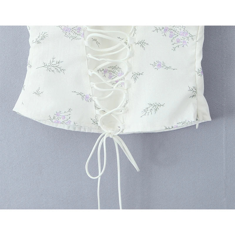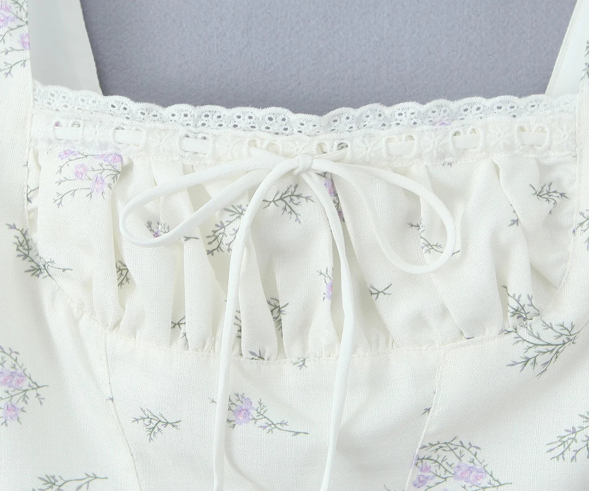 The **Fina Top** is a lovely piece with a delicate floral pattern. Perfect for sunny days. a feminine style that pairs well with any casual outfit.