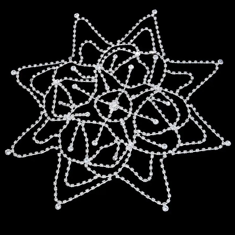 Sophistication and romance are the other names of this headpiece. These silver chains combine numerous refined crystals to make for an octagon cap-like rhinestone head accessory. The sparkle of the crystal chains is amplified by the shimmering diamante that drapes along the hair. creating an all-eye-on-you look. especially when the light' s tracing. Style your party look with your hair down and it knows how to stand you out from the crowd.