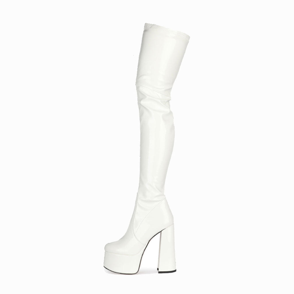 Believe it or not. skin-tight boots are going to make a triumphant return this season. take a look at this pair and give it a go! Just as any others. the sky-high pants-slash-boots are ultra fitted that reflect an explicit sensuality and female-inspired takes on the shoe aesthetics. Balanced by stacked platforms. they are set on chunky heels offering stable height without sacrificing comfort. Made with high-quality patent faux leather. they come with friendly leg hugging stretch upper and you'd love the shiny texture throughout that would make you the best self whether you are hitting in the club or having a cool street style look. They give a 1/4 zip for fitting easier and flattering color choices that will go with everything.