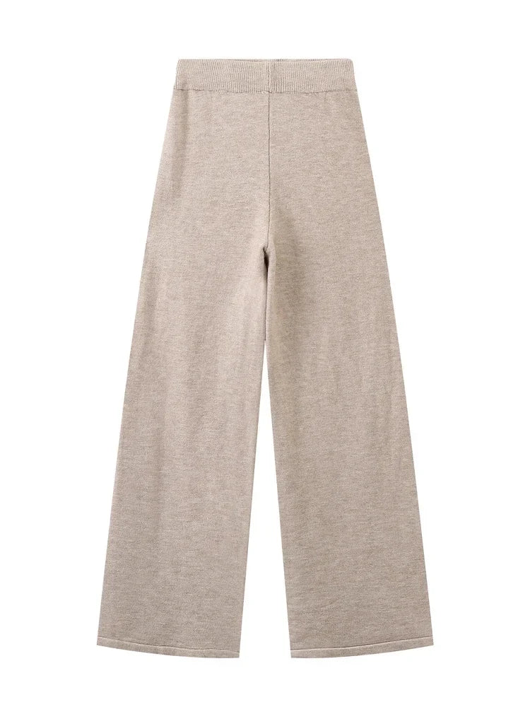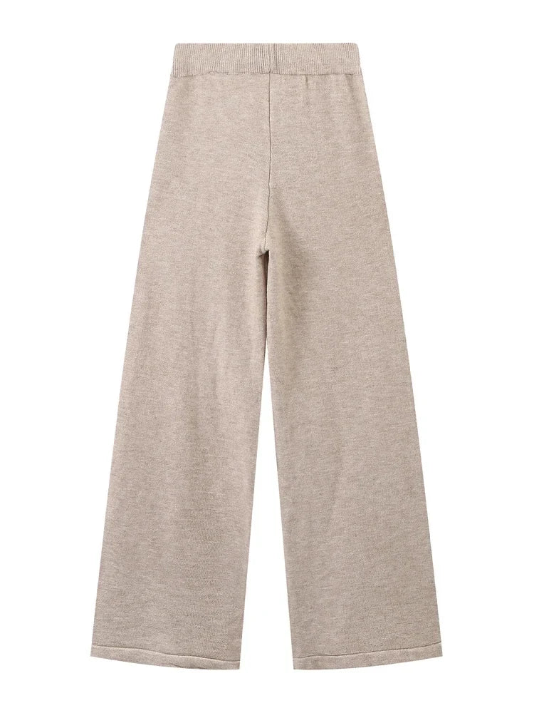 The Golden Mist Knit Set is a cozy and chic outfit perfect for lounging or casual outings. Available in sand. chocolate. and black. it features a comfortable knit top with matching wide-leg pants.