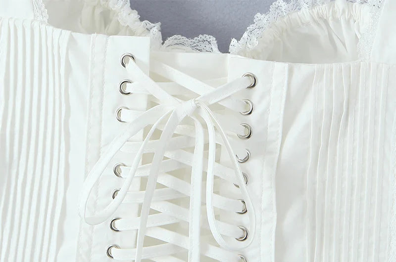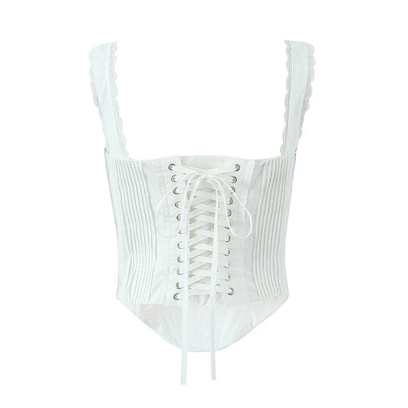 The Heartfelt Corset is a delicate. lace-embellished piece. perfect for adding a touch of vintage charm to your wardrobe. Pair it with your favorite skirt or jeans for a versatile look.
