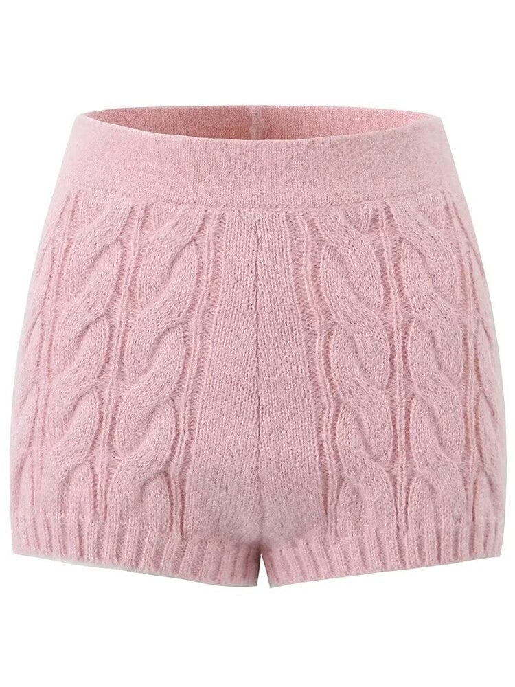The Heart's Desire Knit Shorts are cozy and soft. featuring a delicate knit design. These knit shorts are perfect for lounging and come with a matching top and cardigan to complete the set.