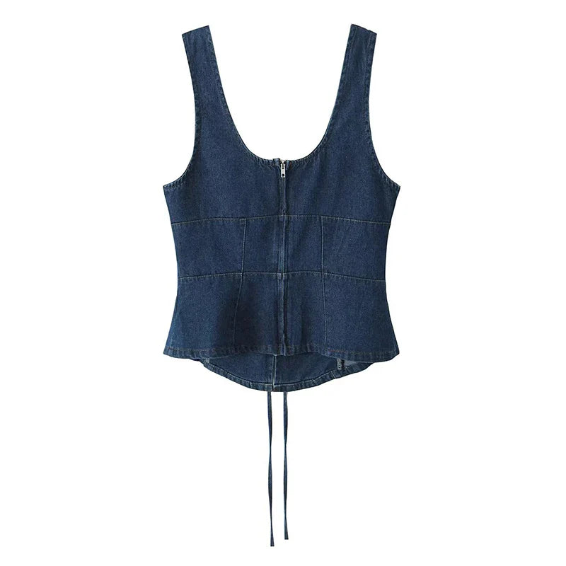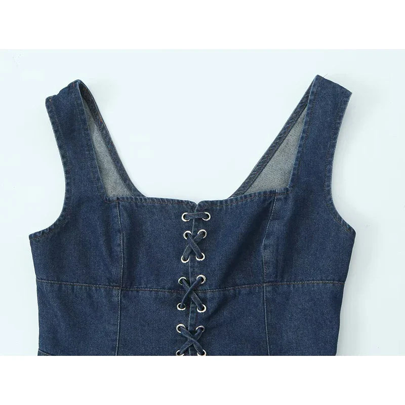 The Honey Top is the perfect blend of chic and casual. This denim-inspired piece features a corset-style lace-up design at the front and adjustable straps for a comfortable fit. Its timeless style makes it a wardrobe staple.