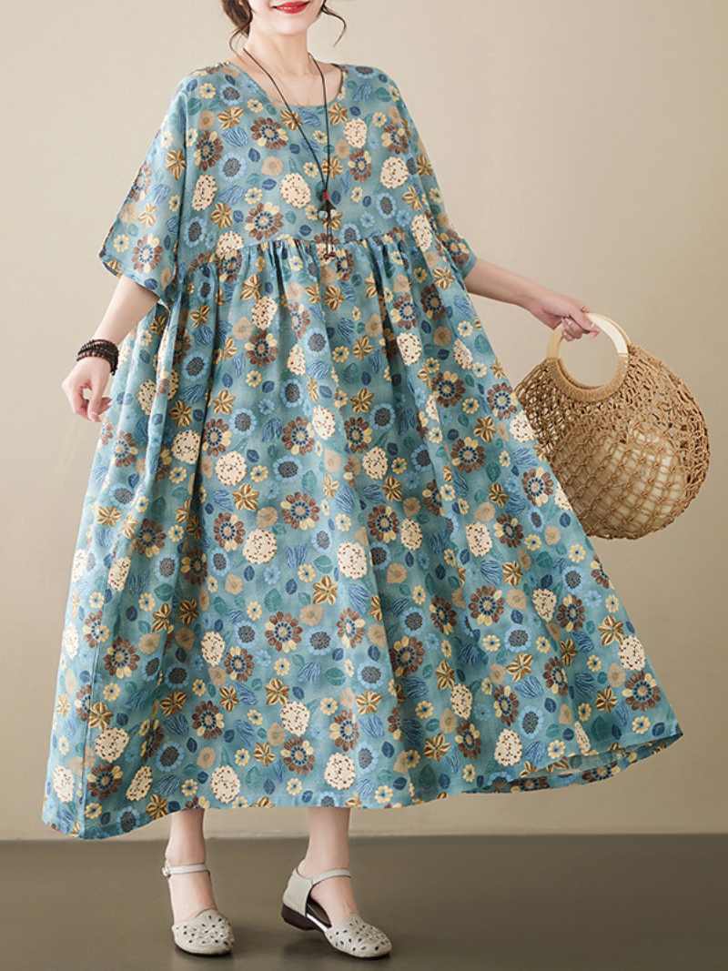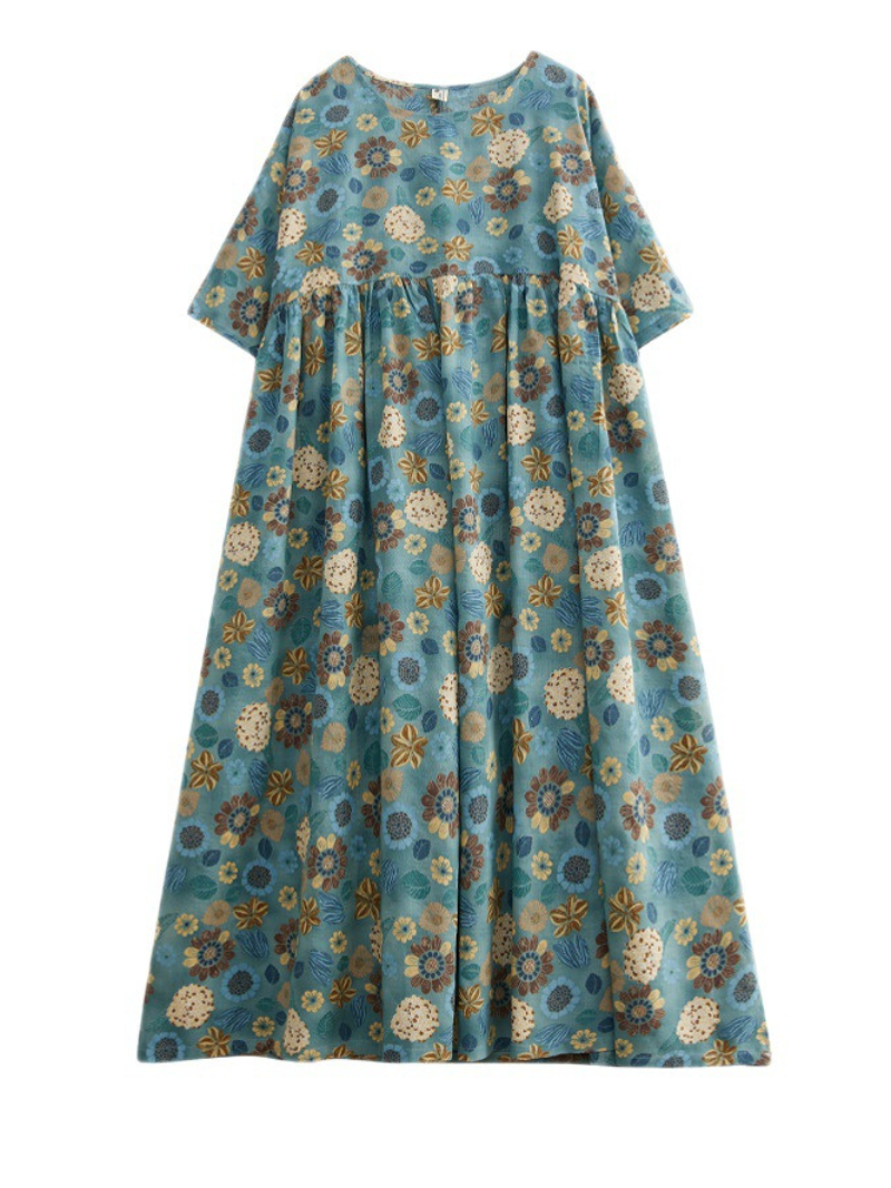 The Women's Round Neck Smock Dress is a comfortable and stylish dress that is perfect for everyday wear. Made from high-quality cotton in a beautiful blue color. this dress features a round neckline that is both flattering and comfortable. The smock style of the dress is loose and flowing. making it a great choice for any body type. This dress is perfect for commuting to work or running errands. as it is both stylish and easy to wear. The simplicity of the dress makes it easy to accessorise. so you can dress it up or down depending on the occasion. Whether you're looking for a casual dress to wear during the day or a more formal option for an evening out. this Women's Round Neck Smock Dress is a great choice.