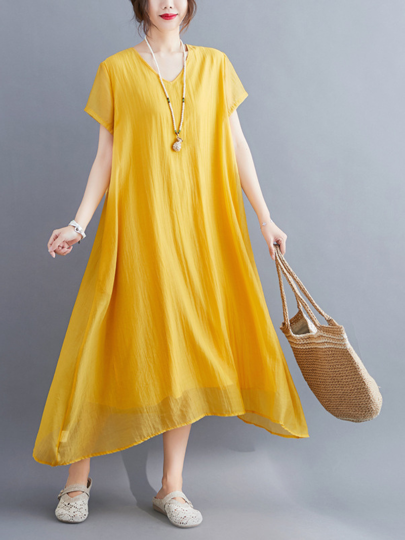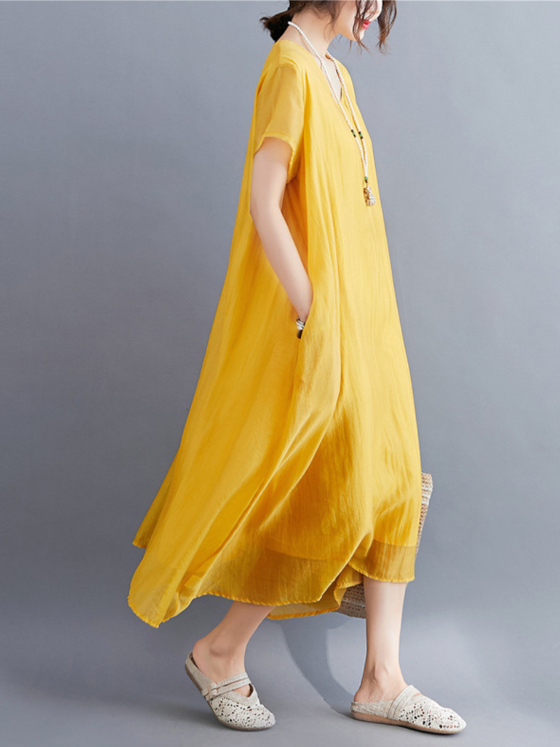 No matter what you are planning for the day. you will look stylish in this dress. The print is simple and elegant. so it can be dressed up or down depending on your mood.V-neck and mid-length skirt for the perfect feminine look. You can wear it as part of a casual outfit with flip-flops or sandals to go out or use it at home as an easy sleepwear.
