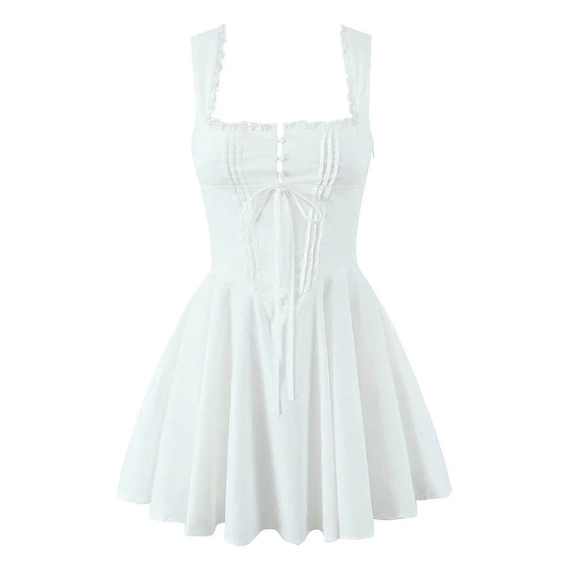 The Kennie Dress is an elegant and versatile dress perfect for any occasion. Featuring a delicate lace trim at the top. a sweetheart neckline. and a flared skirt. it creates a flattering and feminine silhouette. The adjustable straps provide extra comfort and style.