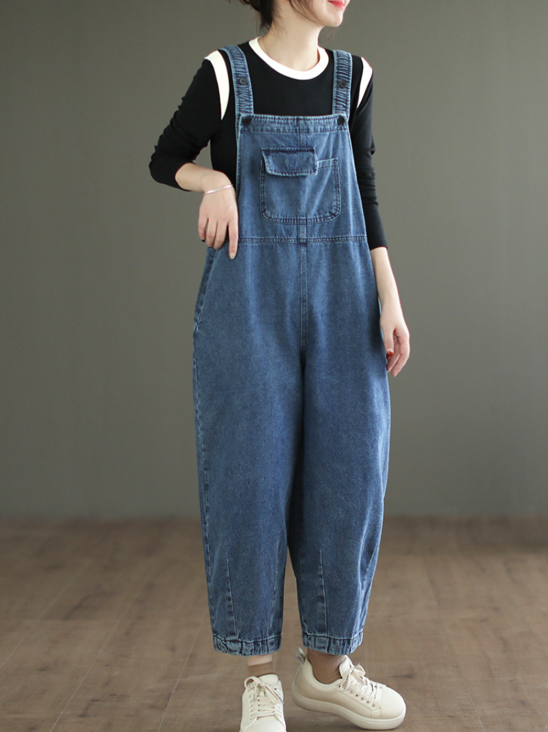 Women's washed denim high waist bib overalls are a trendy and practical clothing item that combines the classic look of overalls with the timeless style of denim. They are designed to sit high on the waist. giving a flattering silhouette and the bib top adds a fun and playful touch to any outfit. These overalls are versatile and can be paired with a variety of tops and footwear. making them perfect for casual outings. work. or even a night out. The washed denim fabric gives the overalls a worn-in. vintage look that is both comfortable and stylish. The functional pockets and adjustable straps make these overalls practical and convenient for everyday wear.