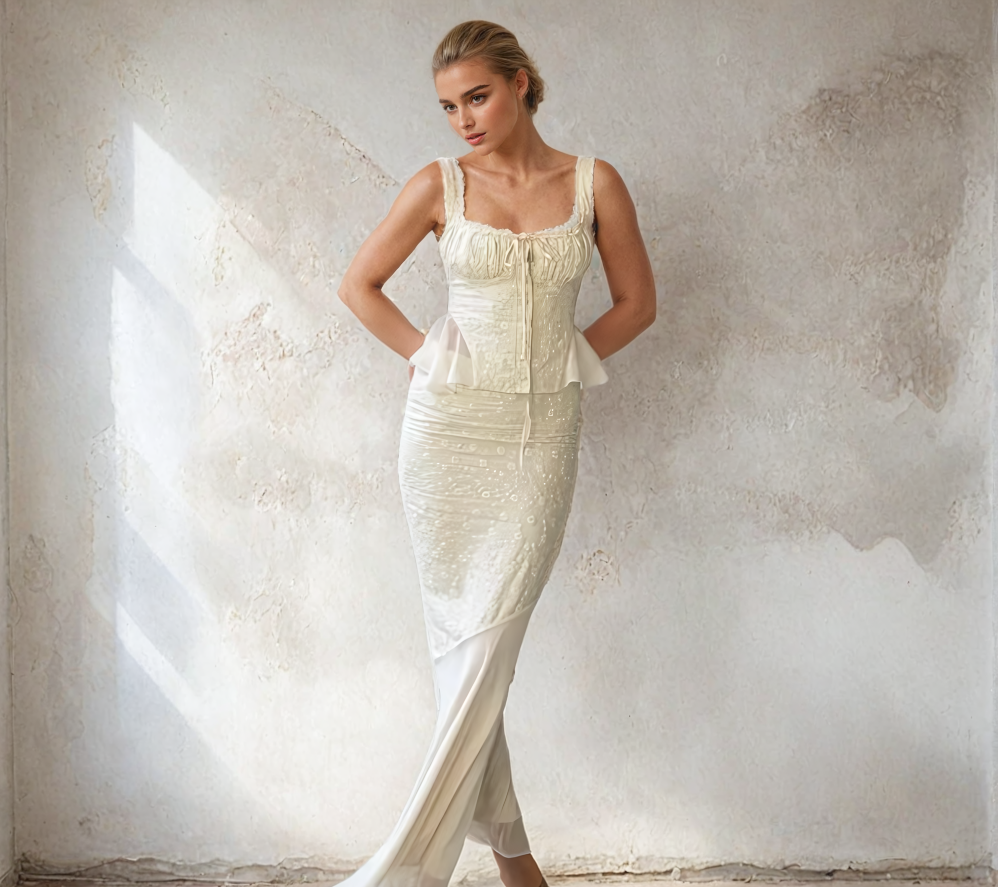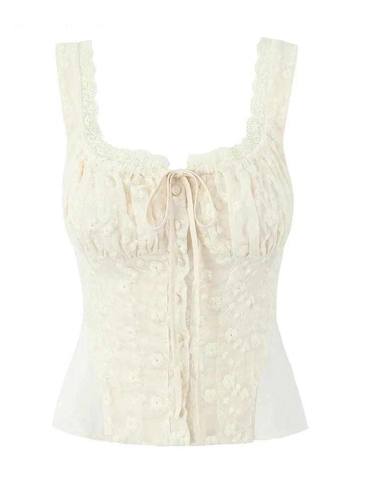 The Lilly of the Dessert Top features elegant lines and delicate lace accents. perfect for a sophisticated look. Available the matching skirt for a complete outfit.