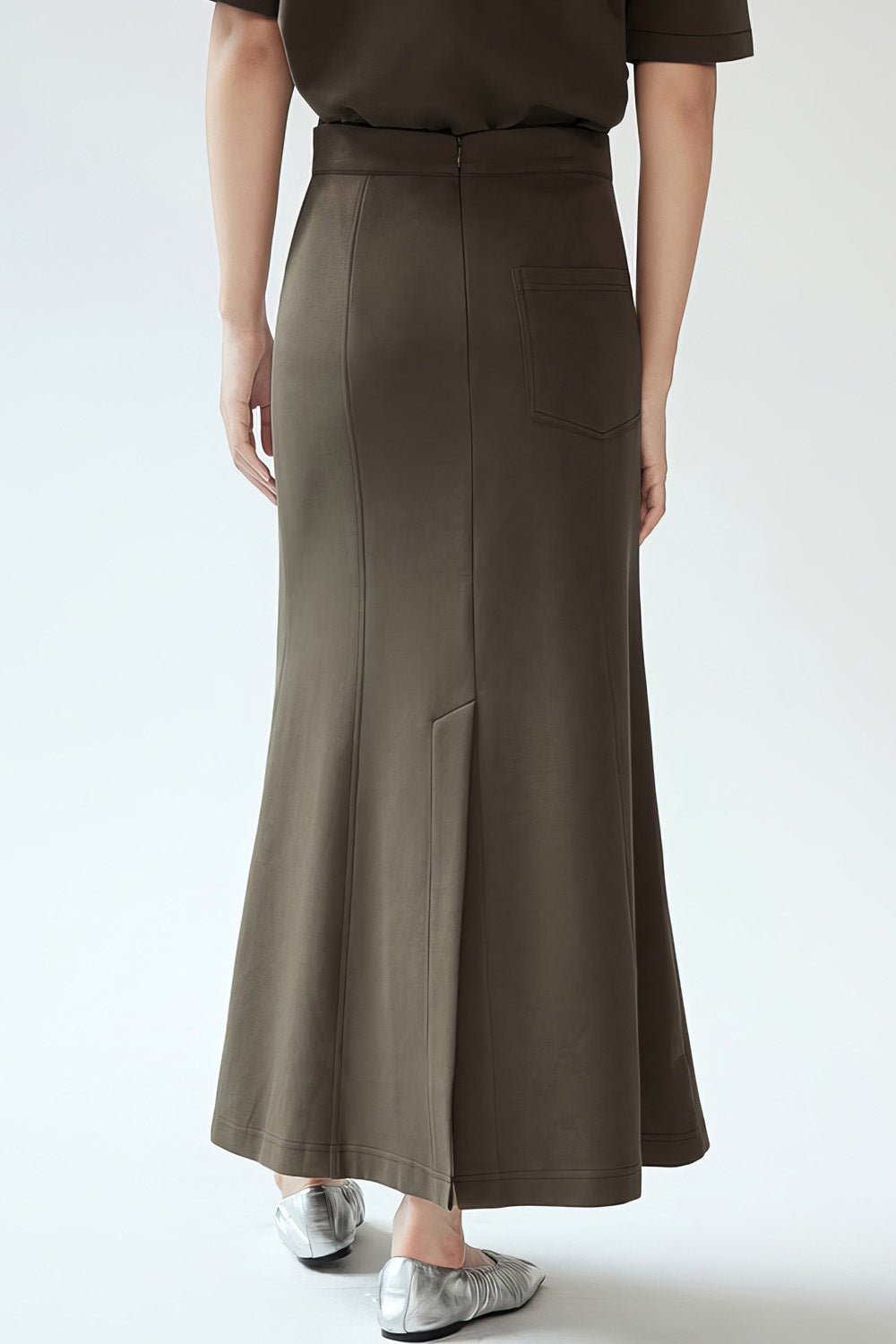 This high waisted Midi Jersey Skirt is designed for comfort and style. Its minimal design and topstitching provide a modern look. while the elastic waistband ensures a perfect fit. Made with soft. warm material. it's the perfect base piece for an autumn wardrobe.