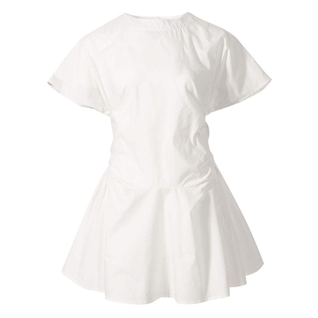 A refreshingly grown-up take that's in equal parts sweet and edgy. Made from polyester-blend fabric for a non-clingy touch. the designer white dress is cut in a fresh A line silhouette. featuring a round neckline. short sleeves. and a hidden zip fastening to the back. We made the dress fitted on the waist with the frilled detail to accentuate the high waistline. and then flared out to a pleated mini skirt. making this piece a girly style that can be worn for every daily occasion. It's a truly investment worthy dress that your summer wardrobe needs.