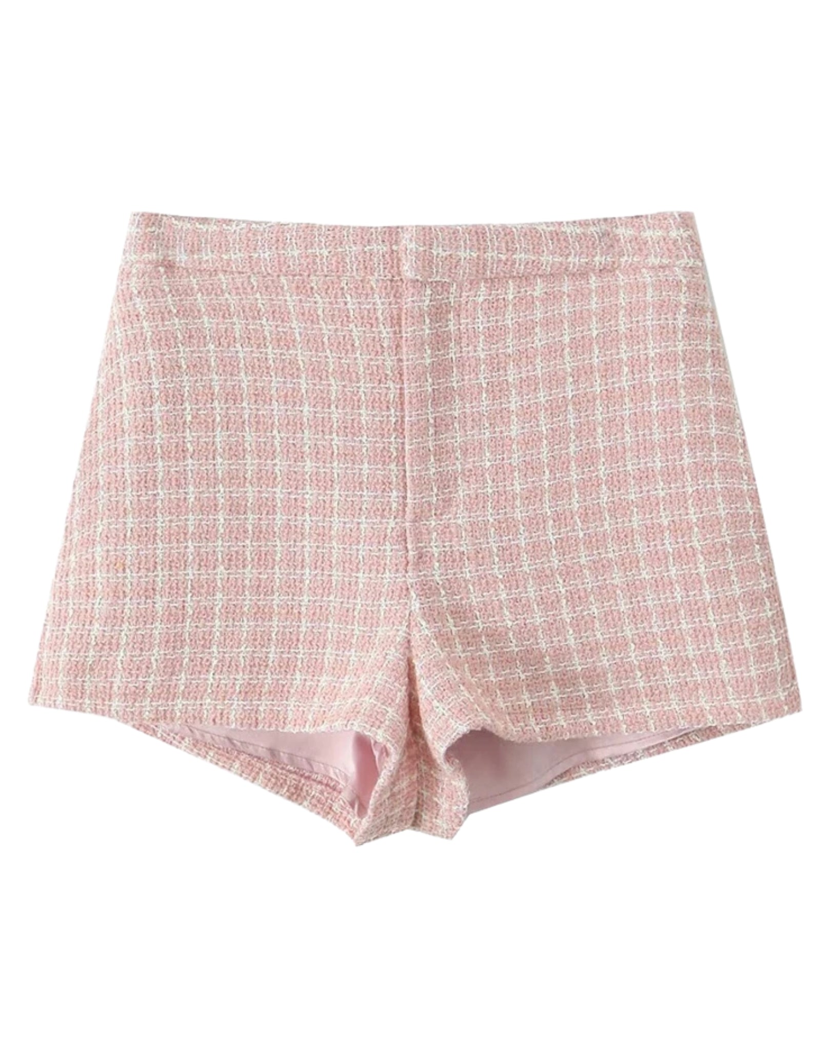 The Renata Shorts are chic and sophisticated tweed shorts that come with a matching top and cardigan. making them a perfect set for a polished look.