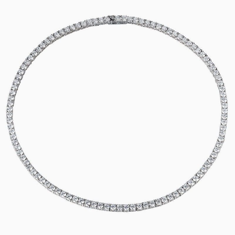 Tonight. let the stars shine bright as you radiate charm with our designer tennis necklace. Adorned with stunning 5mm cubic zirconia. it's a timeless classic that adds allure to any look. Make every moment sparkle with your undeniable charisma.