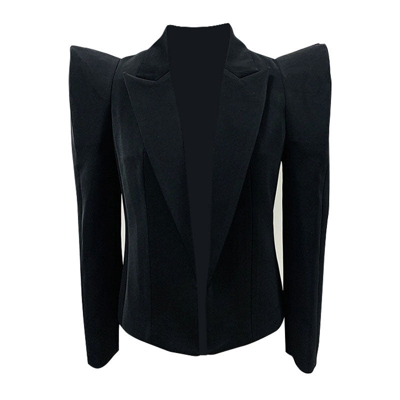 Renowned for our commitment to producing timeless wardrobe staples with creation and uniqueness. this black blazer from our designer brand showcases the label's impeccable craft in women's fashion. Boasting a fitted slim silhouette. the stylish piece falls at a short length with the classic lapel collars and polished gold-toned buttoned cuffs. Big-shouldered broads enhance the silhouette with a strong and powerful image. To create an inverted triangle profile. make sure to balance the strong shoulder with more feminine pieces like mini skirts and pointed toe boots.