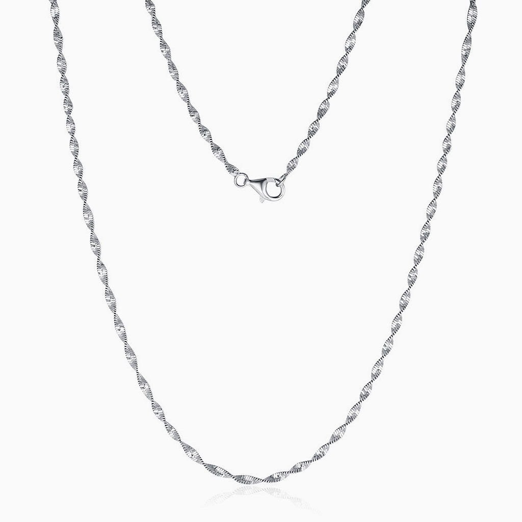 Shimmer and shine with elegance wearing our Singapore chain necklace. Plated in rhodium. this dazzled designer chain link necklace exudes a captivating brilliance. Its intricate Singapore chain design adds a touch of sophistication to any ensemble. whether worn alone for understated allure or layered for a more dynamic look.