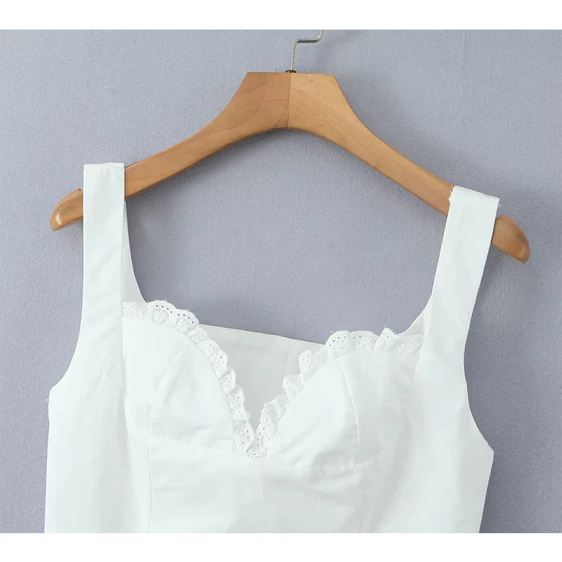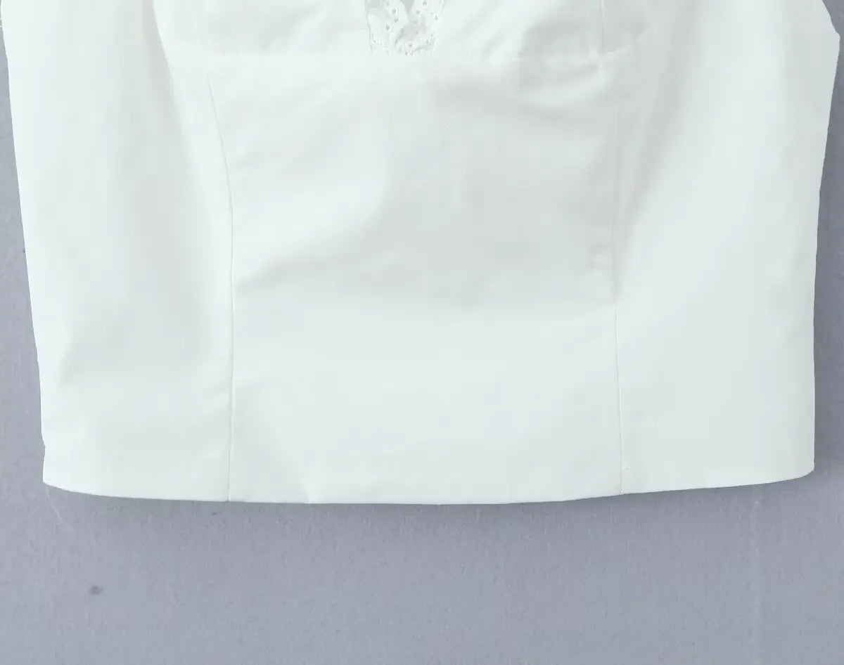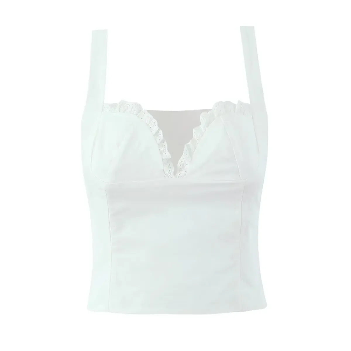 The Sweet Pea Top is a simple yet elegant piece with delicate lace detailing along the neckline. perfect for any casual or semi-formal occasion.