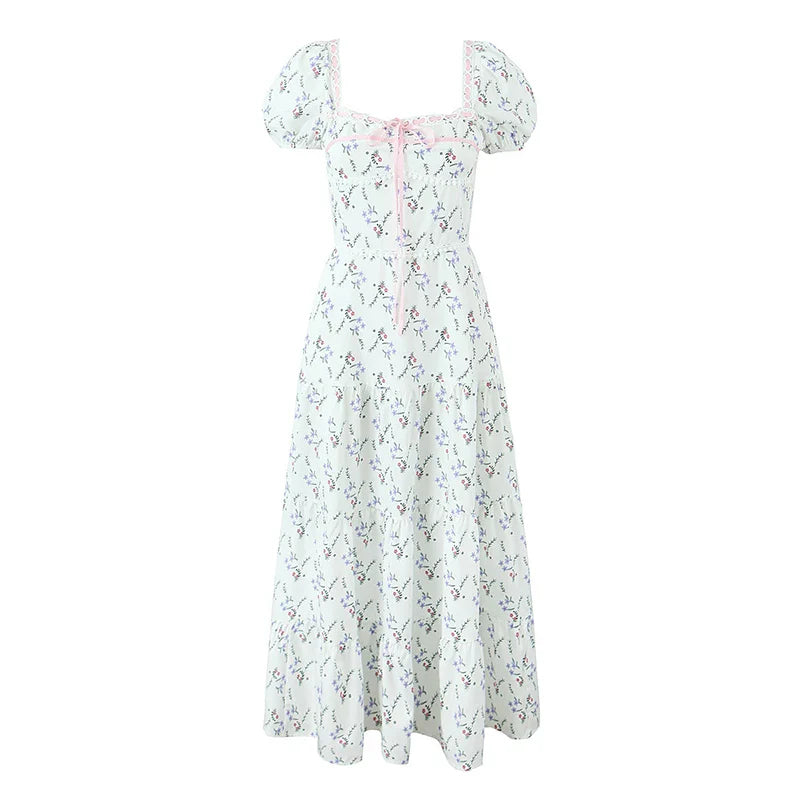 The Tangled Dress is a beautifully designed floral dress with puffed sleeves and a flattering fit. Perfect for spring or summer. it adds a touch of romantic elegance with its charming details and light fabric.