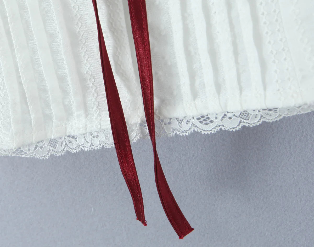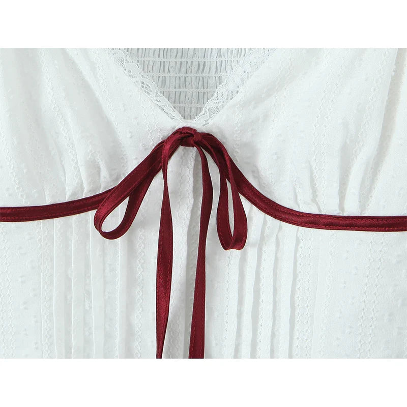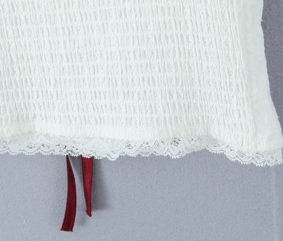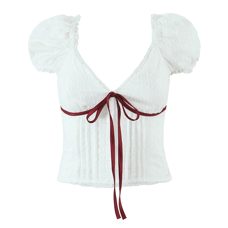 The **Thistle Top** is a sweet and delicate top with puff sleeves and a front tie detail. Made with a soft fabric and a flattering silhouette. it is perfect for warm weather or pairing with skirts for a chic casual look.