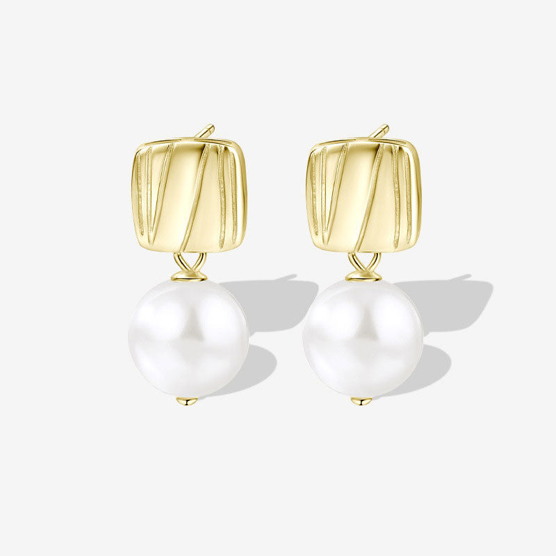 Let's get glamorous and cute with our designer baroque drop earrings. A unique metal block perches atop its pearl. creating a striking juxtaposition of modern minimalism and timeless elegance. Precious create. designed to be worn every day.