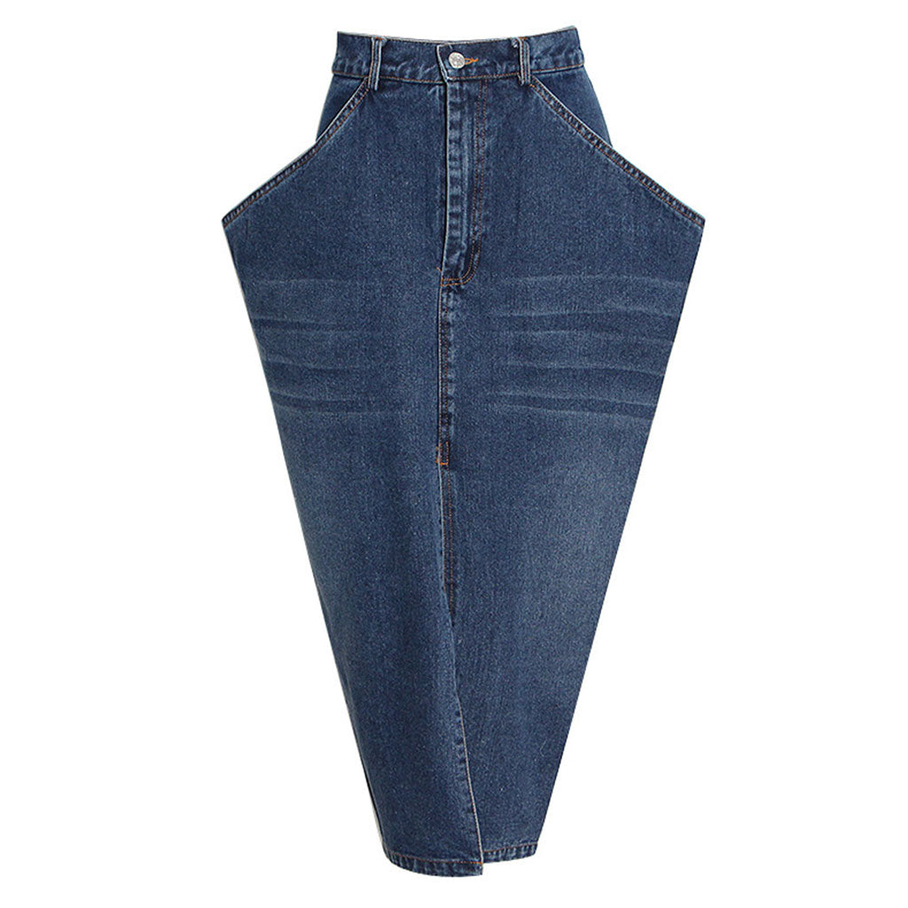 We're all about the effortless and relaxed look of the LUXE's new designer collection. This cool-girl tapered skirt showcases two large pockets at the side and then tapers down to the end with the front split for your easy movement. The whisker design on the thigh combines with the mid-wash denim giving us a unique vintage vibe. The belt loops. button-and-zip fly to the front make this piece a classic one of your denim style. To keep it casual and cool. try to team it with a crop tank top and a pair of white sneakers.