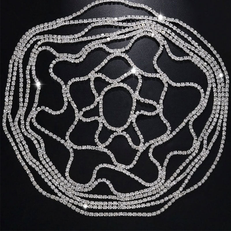 Roar back to the golden '20s with these crystal chains. The headpiece is studded with numerous crystals to make for a cap-like rhinestone chain net. The crystal chains drape along the hair to frame the face. giving you a high-shine finishing touch. One size fits all. It's perfect for those fancy Gatsby themed parties. Wear this retro sparkly piece with a crystal tassel dress and you're sure to turn heads in this piece.