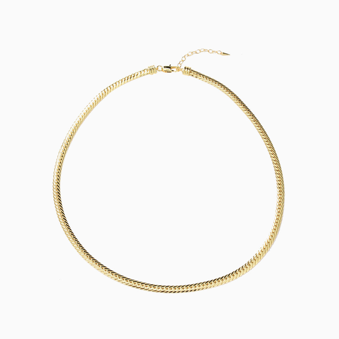 Having a snake-effect inspiration in an open design. this luxury necklace is the perfect way to upgrade your street look. This eye-catching necklace features chunky twisted chains. a fixed length with a lobster clasp fastening. a fixed length with a lobster closure. and a gold-tone plated finish. Add a bit of detail by styling your outfit with it. Our designer jewelry collection also contains many trendy necklaces for women. Keep scrolling for the best styles here!