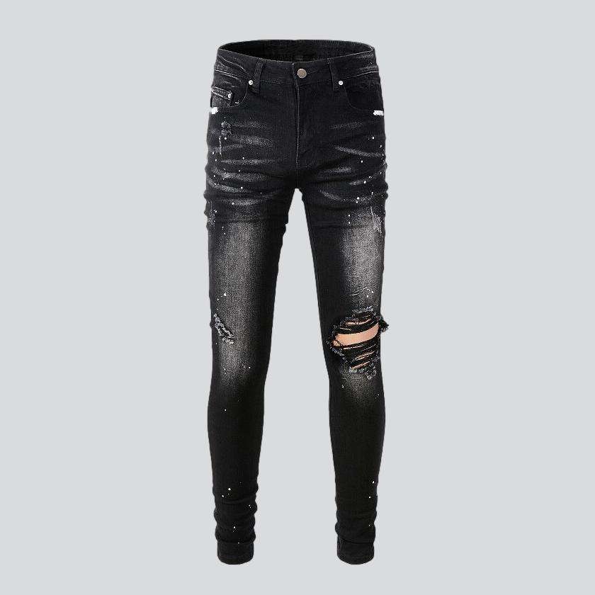 Introducing the 2023 Autumn Collection ââ‚?White Paint Splatters Men's Jeans ââ‚?a perfect blend of urbane trend and vogue sophistication!