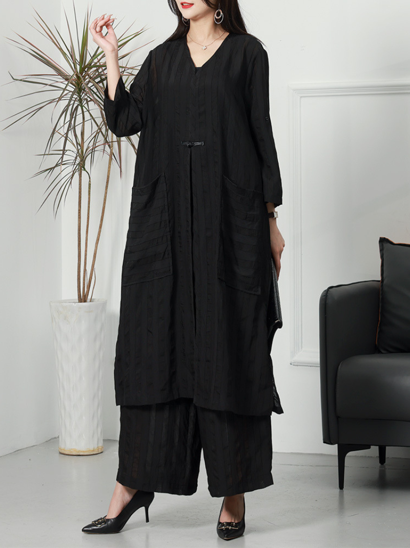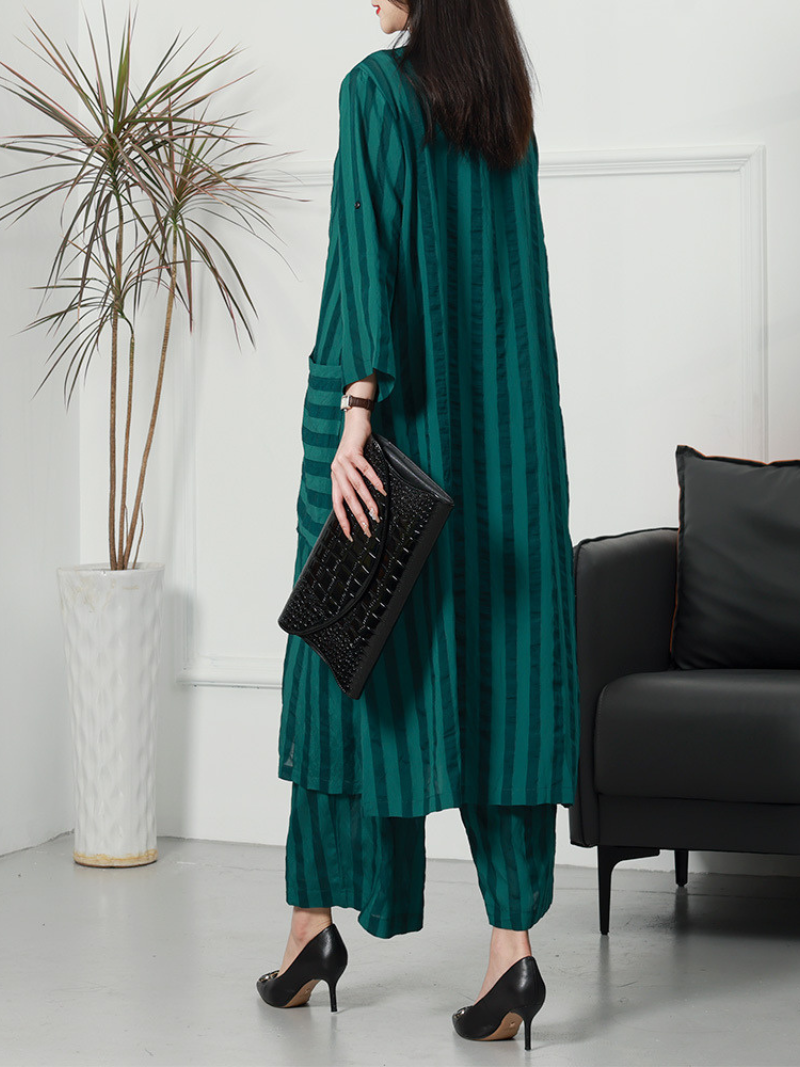 This Women's Summer Large-Size Striped Cardigan Two-Piece Co-Ords Set is a stylish and comfortable outfit option for the warmer months. The material is made of 85% cotton and 15% nylon. making it lightweight and breathable. The set features a striped pattern in green and black. making it easy to mix and match with other pieces. The cardigan and coordinating shorts are perfect for a casual day out or lounging at home.Perfect for a summer day out. this co-ords set features a striped cardigan and shorts in a comfortable cotton blend material. The large-size fit makes it easy to wear and the white and blue stripes give it a fresh. summery feel.