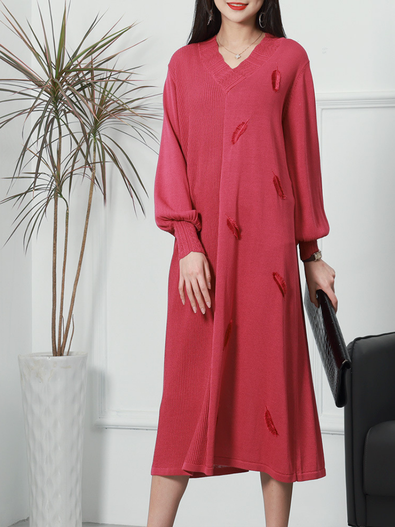 This Women's V-neck Knitted Hemp Loose Midi-Dress is the perfect combination of comfort and style. The dress is made of knitted hemp material. making it breathable and lightweight. It comes in three beautiful colors. red. black. and coffee. which are perfect for any occasion. The loose waist design provides a comfortable fit and the lantern sleeves add a touch of elegance to the dress. With a flattering V-neck design. this dress is perfect for those who want to look chic and stylish while staying comfortable.