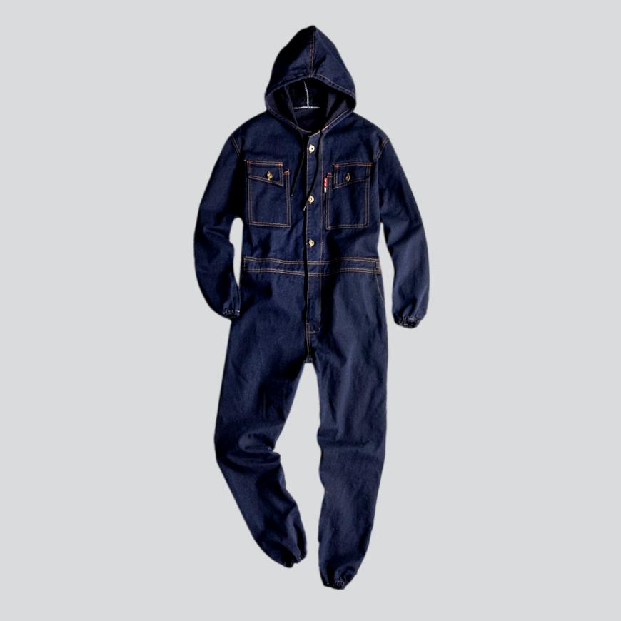 Introducing the 2023 Autumn Collection Labor Hooded Men's Denim Overall ââ‚?a vogue-forward interpretation of conventional labor style!
