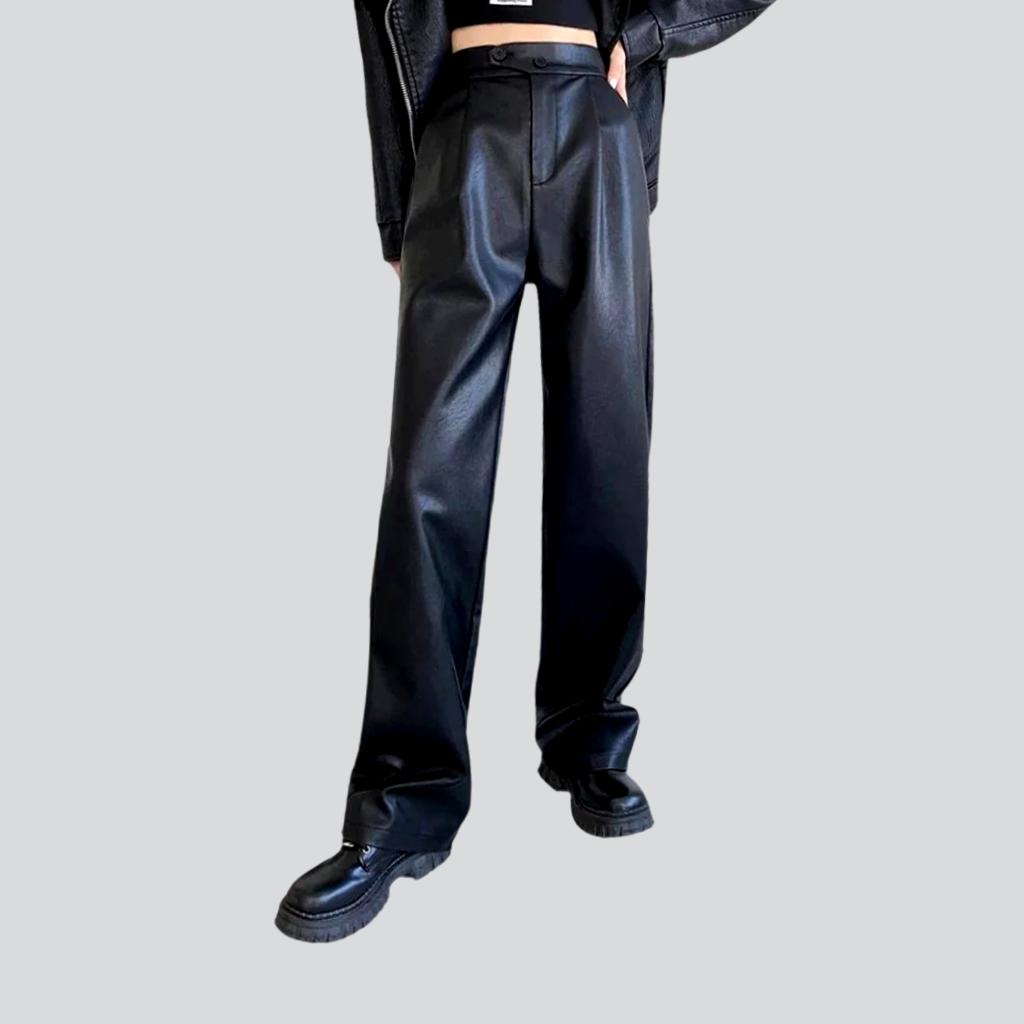 Inject classic glamour to your wardrobe with our 2023 Autumn-Winter Collection millennium style. pleated-waistline. wide leg denim pants! Made with luxe denim. this piece features a unique zipper & buttons closure. while the wax finish lends a subtle hint of vintage charm. Enjoy the perfect balance of bygone elegance and modern-day style with this exquisite ensemble!